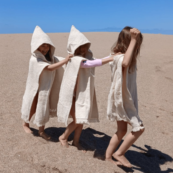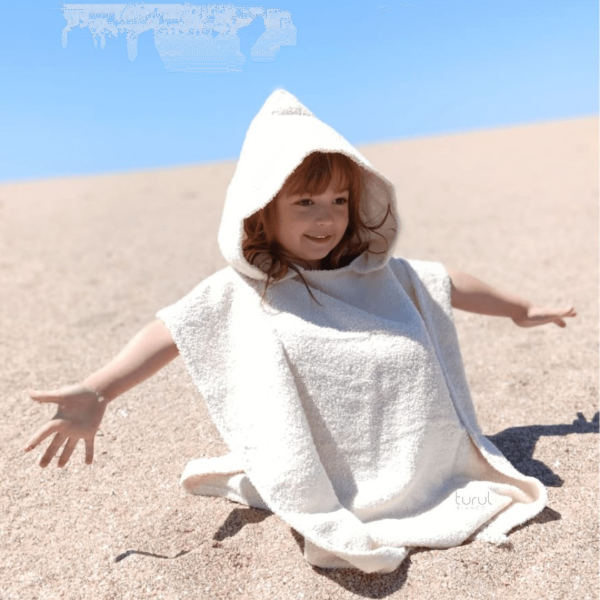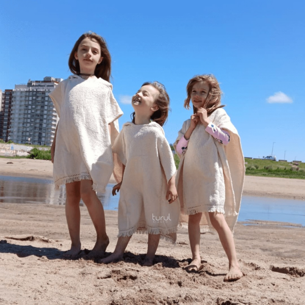 (1) Poncho 60 cm x 65 cm, capucha 34 cm alto