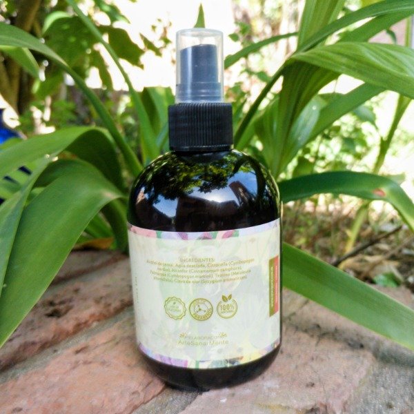 Es cicatrizante, calma el ardor y la picazón. Es hipoalergénico y libre de químicos que dañan el medio ambiente. Puede aplicarse en ambientes, sábanas y cortinas. No mancha la ropa.