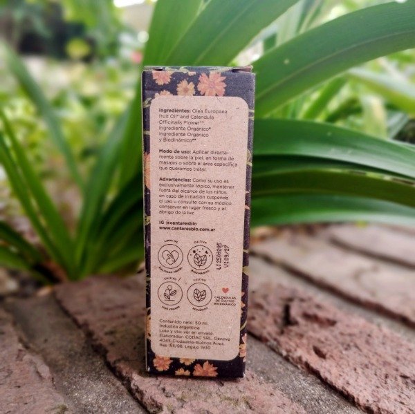 “Para que este aceite pueda realmente transmitir todas las propiedades de esta Flor Maravillosa, se emplean Caléndulas de cultivo biodinámico y aceite de Oliva Orgánico, de primera prensa en frío. En estos cultivos se usan las semillas originales, sin adulteración genética, crecen en suelos limpios, en el caso de la caléndula, junto a otros cultivos, para cuidar la biodiversidad y nutrición del suelo. Siempre se acompaña y se respeta los tiempos de crecimiento.