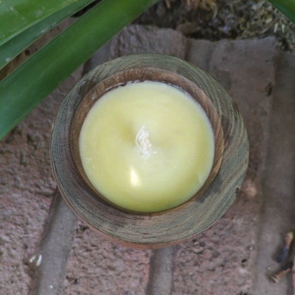 Velón de Soja en Cuenco de Palo Santo realizado a partir de madera caída en el corazón del monte chaqueño.